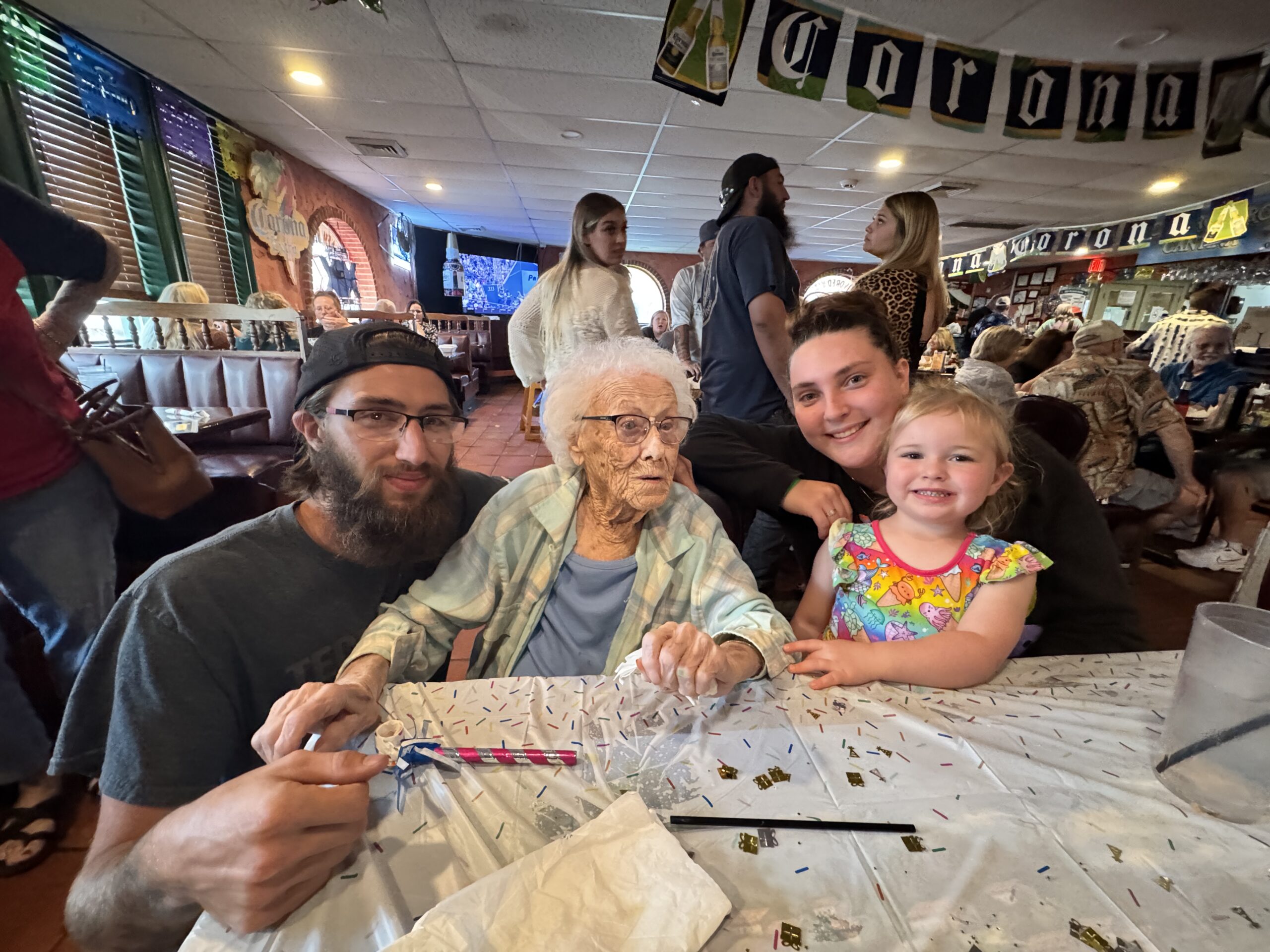 We had our last dinner with grandma Leta at Casa Romero. Mickie is going to be here tomorrow from Montana to take her up here for a few months, on the 8th of August. This year has been very challenging for everyone in taking care of Grandma Leta after her stroke in March. She cannot live alone in her home, per the doctor’s order. She has good and bad days because of the stroke. Unbelievable that she will be 101 on the 20th of August!!!